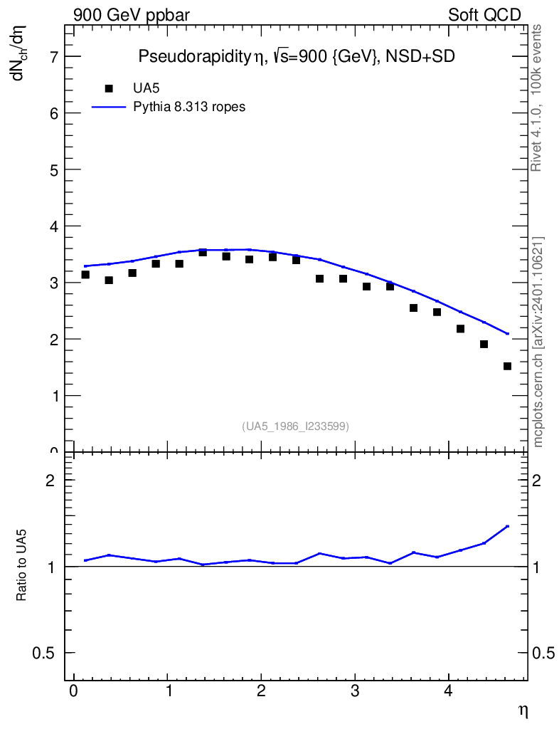 Lines: data, pythia8 8.313 ropes |