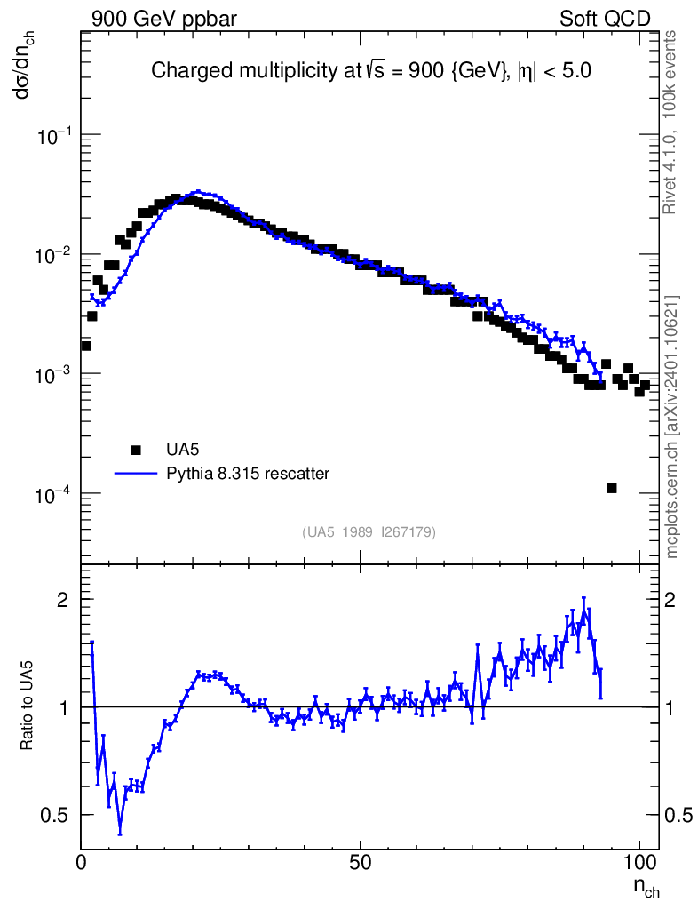 Lines: data, pythia8 8.315 rescatter |