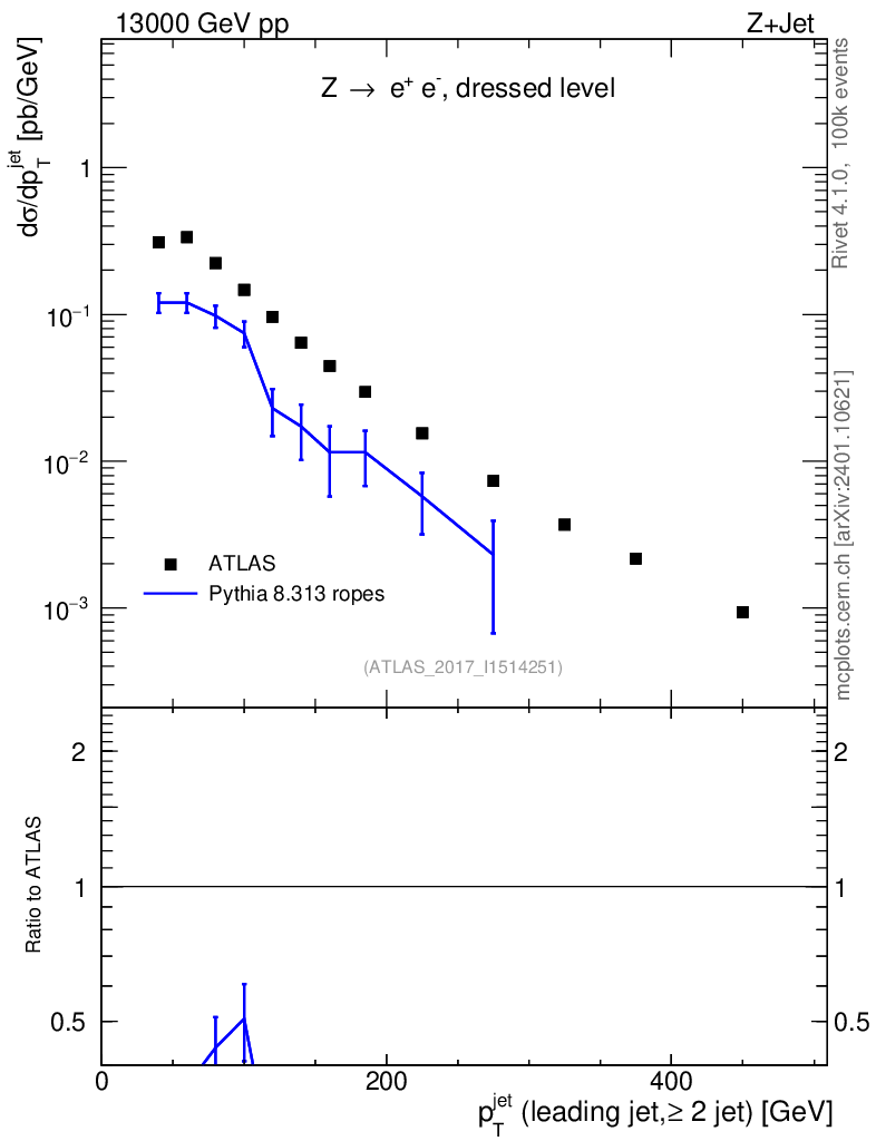 Lines: data, pythia8 8.313 ropes |