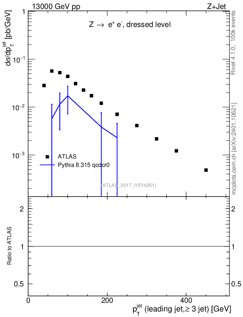 Lines: data, pythia8 8.315 qcdcr0 |