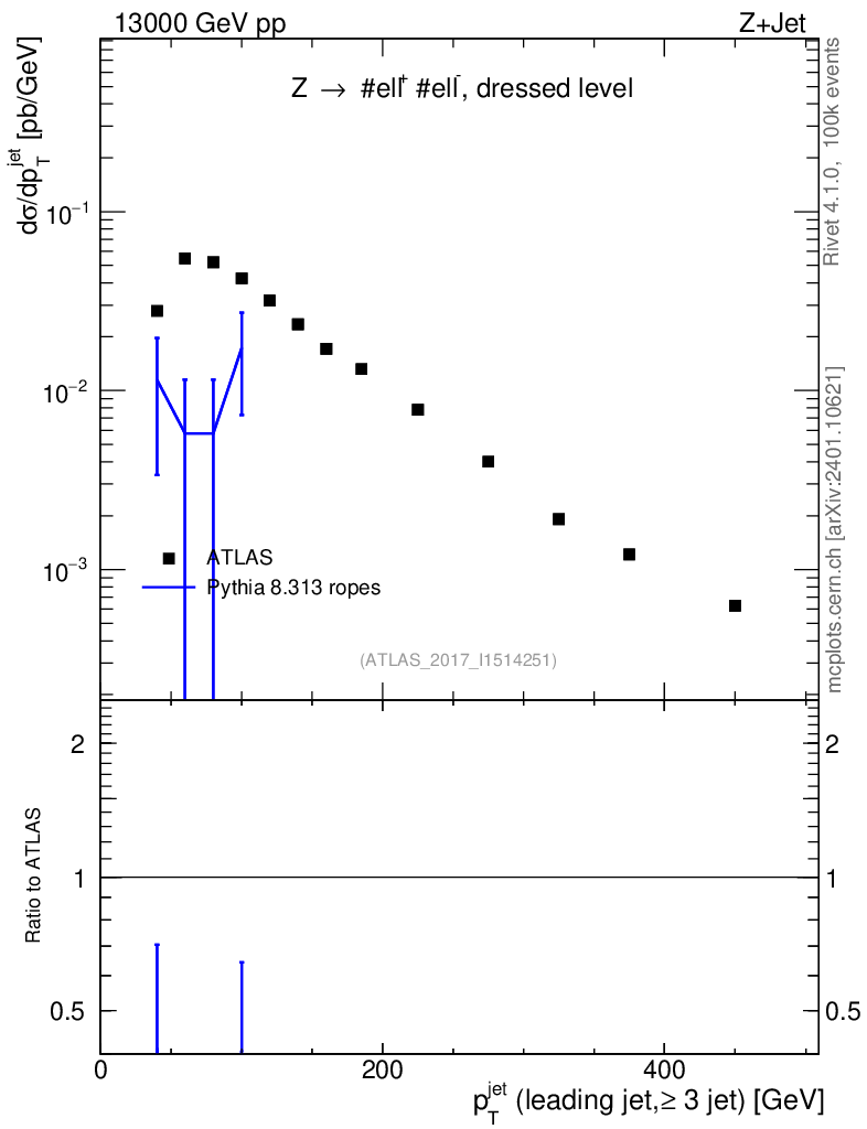 Lines: data, pythia8 8.313 ropes |