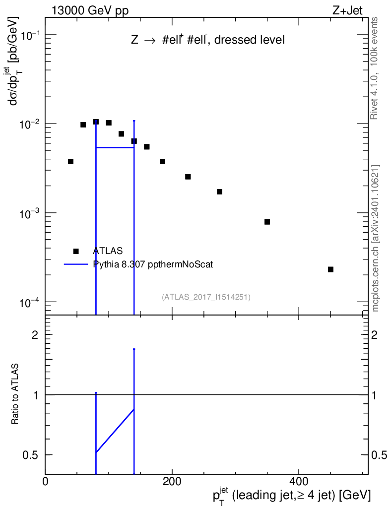 Lines: data, pythia8 8.307 ppthermNoScat |