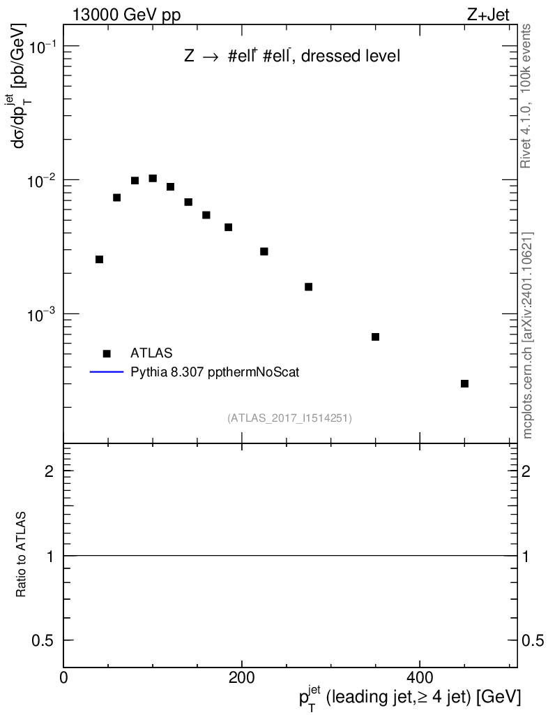 Lines: data, pythia8 8.307 ppthermNoScat |