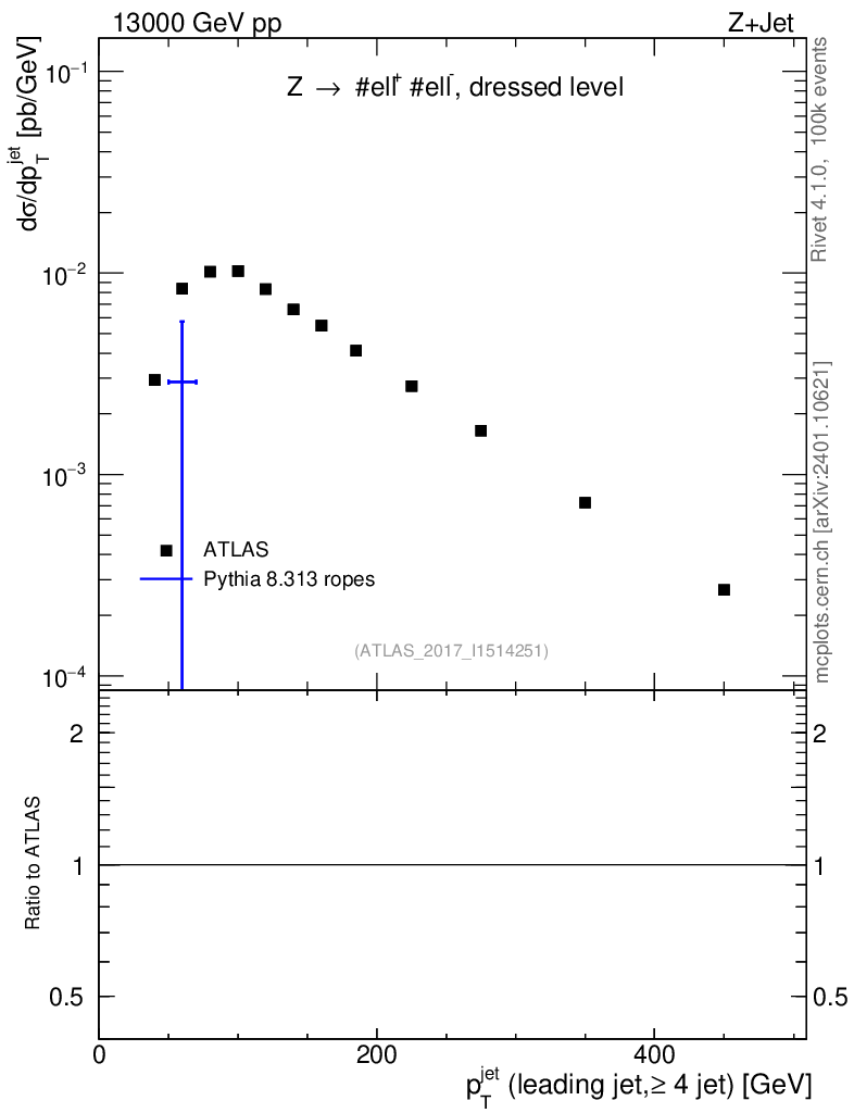 Lines: data, pythia8 8.313 ropes |