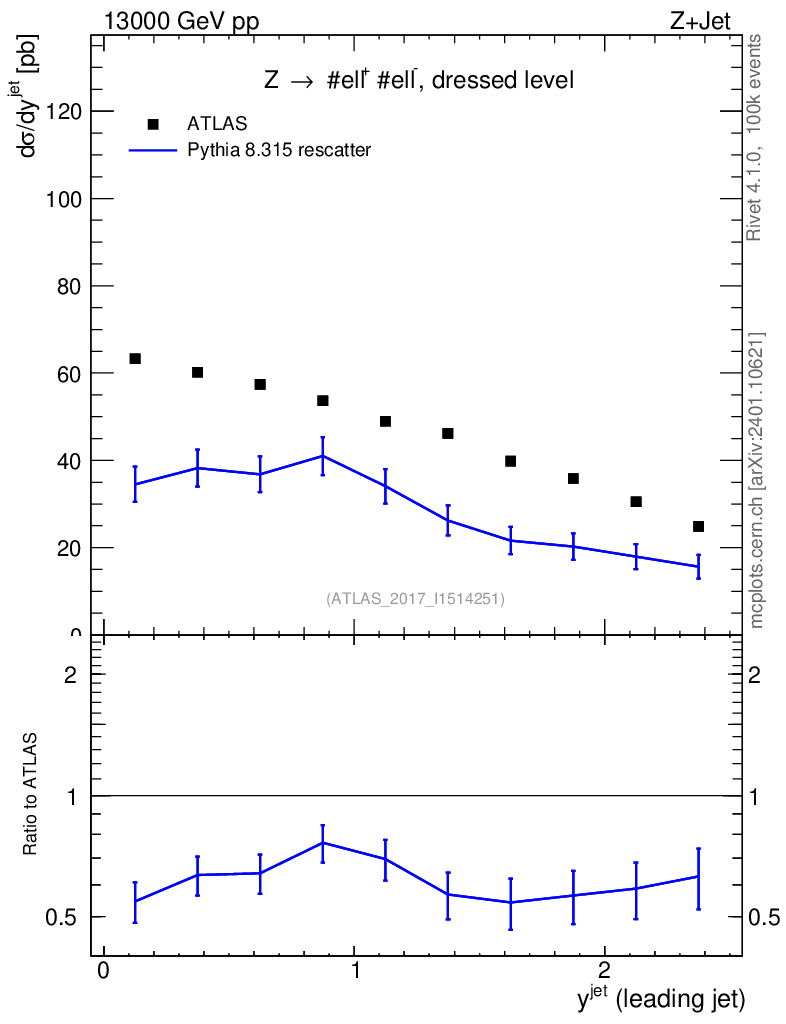 Lines: data, pythia8 8.315 rescatter |
