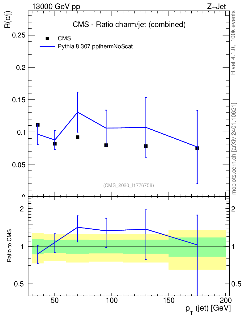 Lines: data, pythia8 8.307 ppthermNoScat |