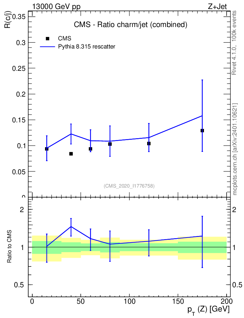 Lines: data, pythia8 8.315 rescatter |