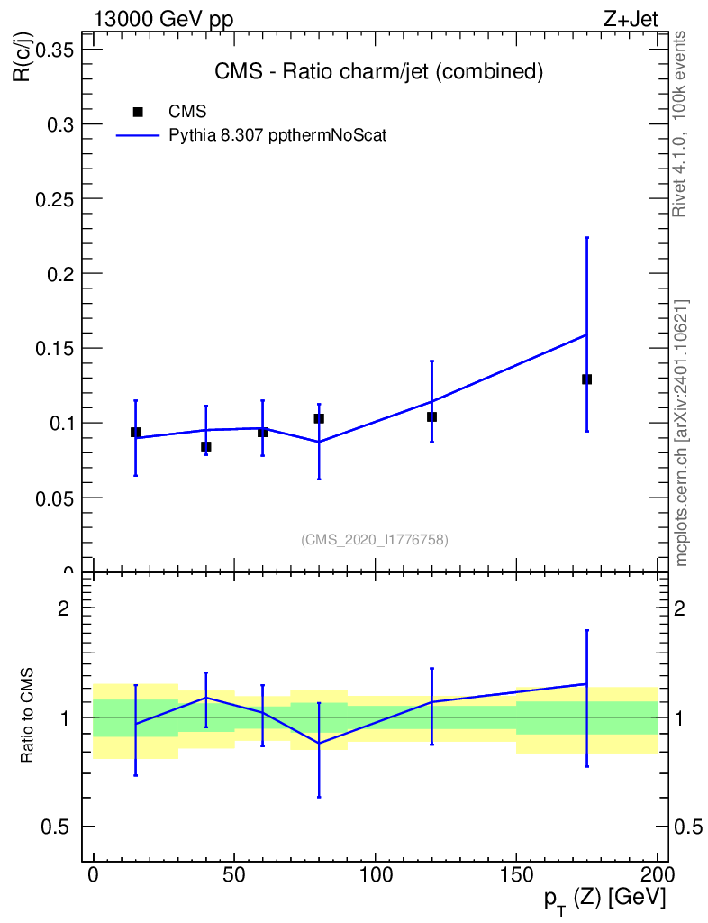 Lines: data, pythia8 8.307 ppthermNoScat |