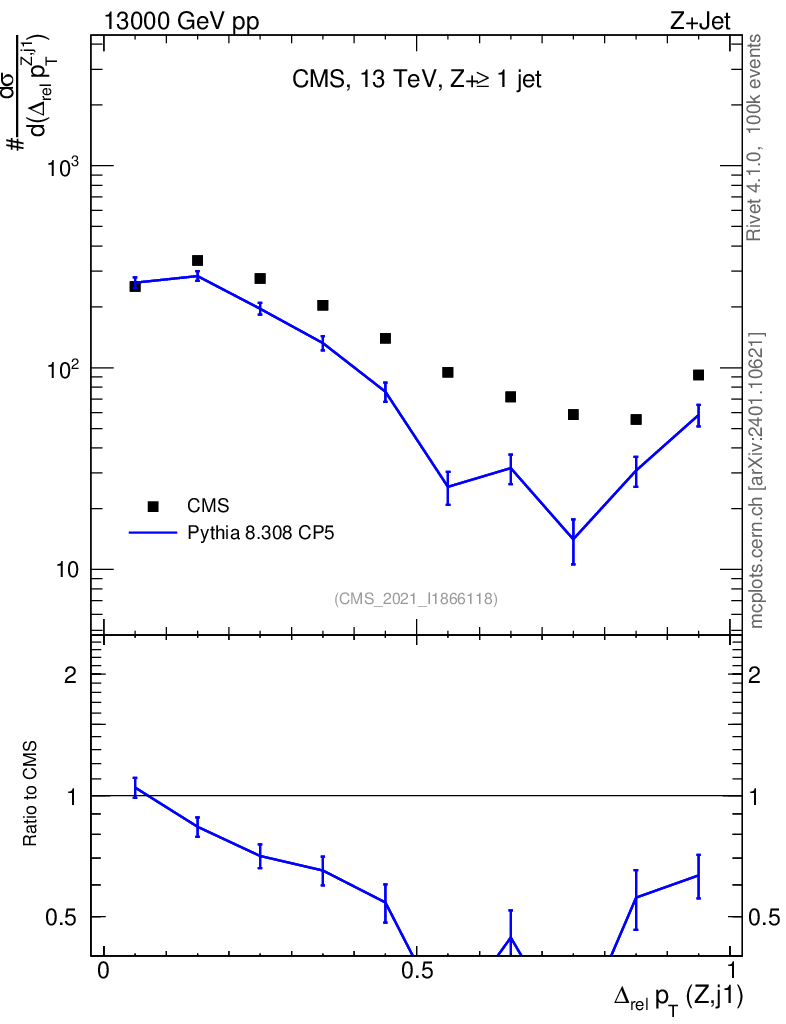 Lines: data, pythia8 8.308 CP5 |