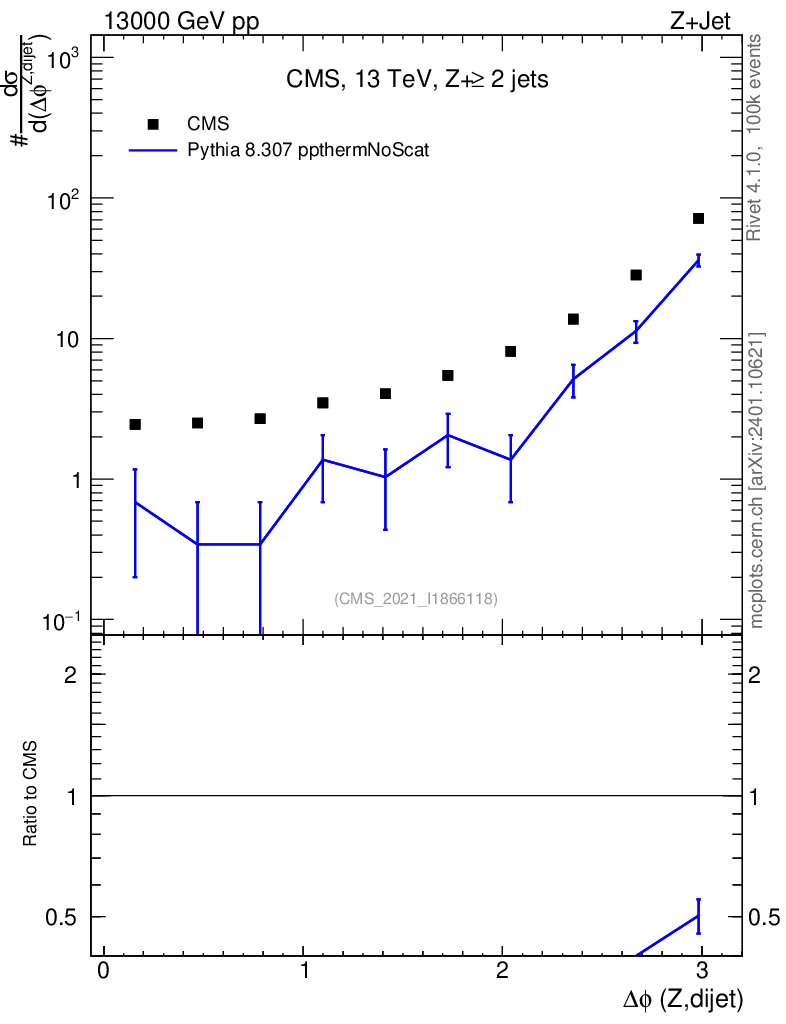 Lines: data, pythia8 8.307 ppthermNoScat |
