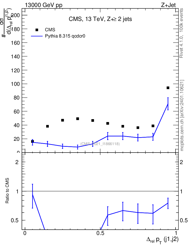 Lines: data, pythia8 8.315 qcdcr0 |