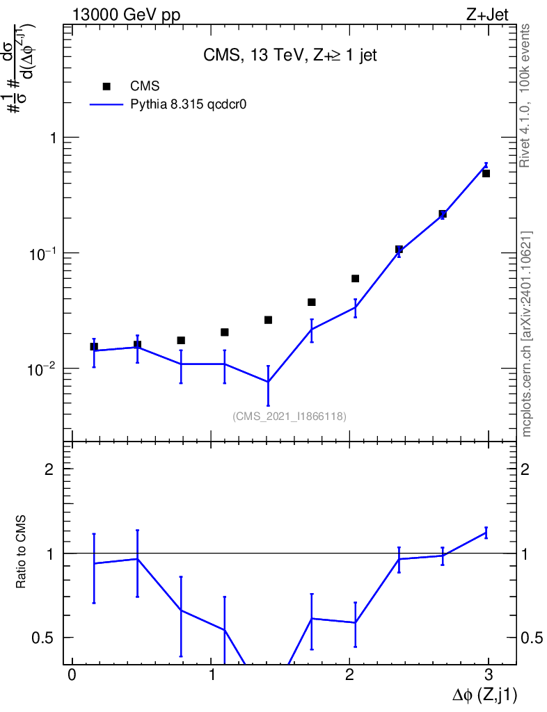 Lines: data, pythia8 8.315 qcdcr0 |