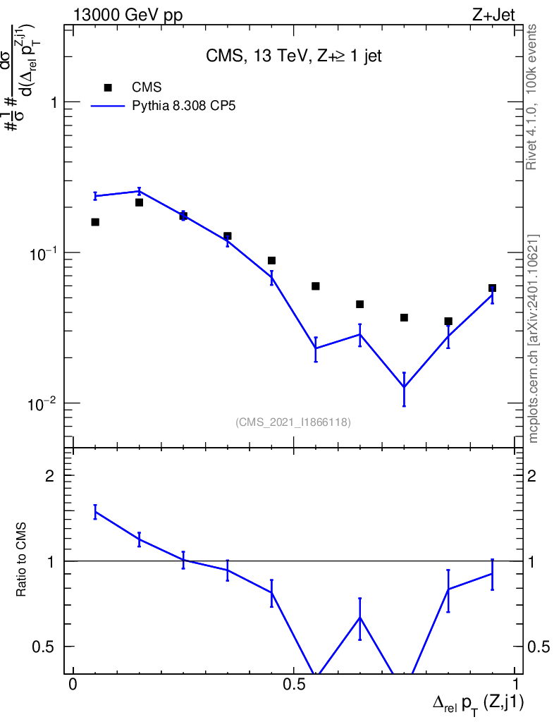 Lines: data, pythia8 8.308 CP5 |