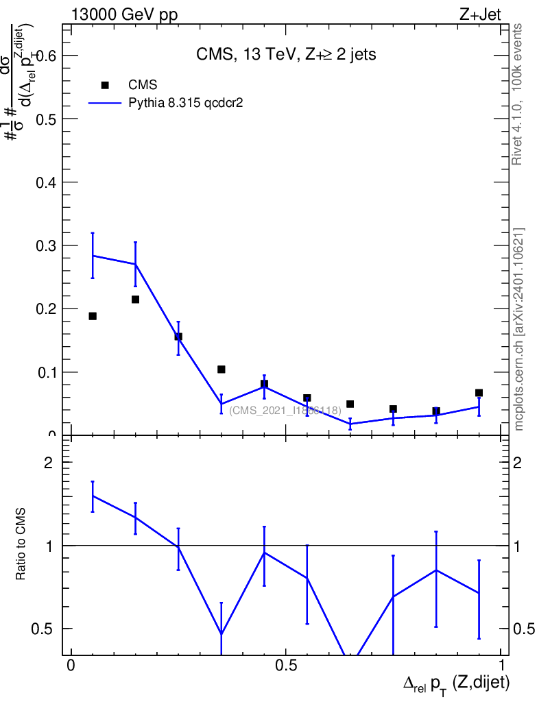 Lines: data, pythia8 8.315 qcdcr2 |
