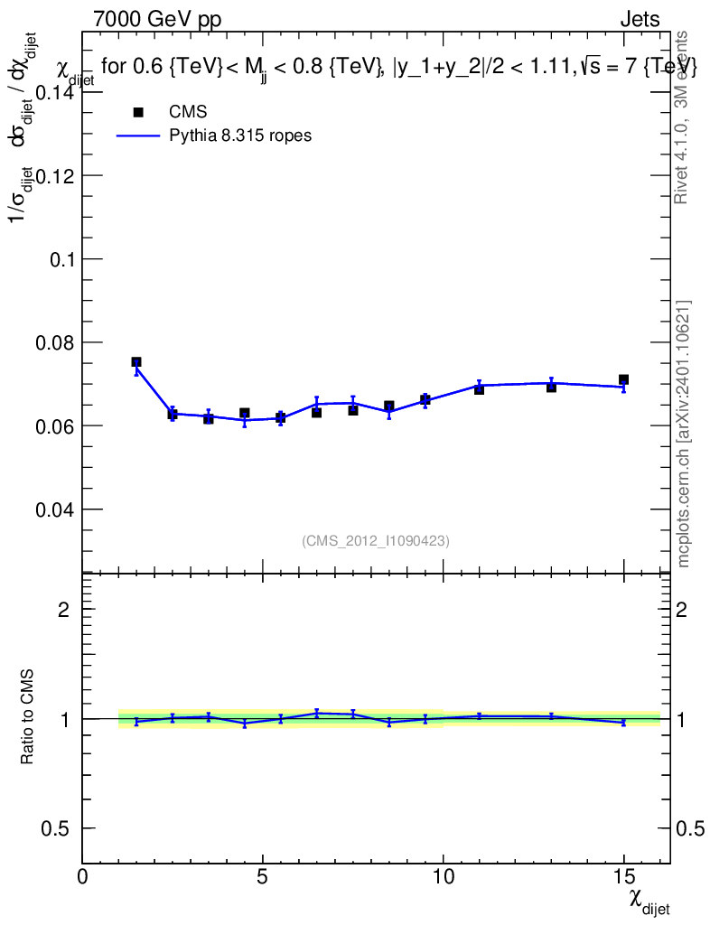 Lines: data, pythia8 8.315 ropes |