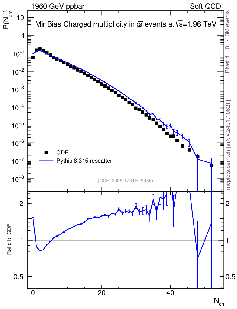 Lines: data, pythia8 8.315 rescatter |