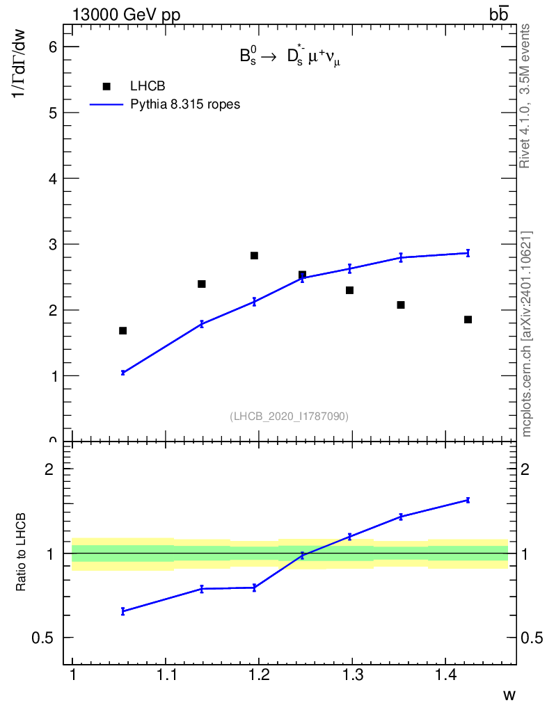 Lines: data, pythia8 8.315 ropes |