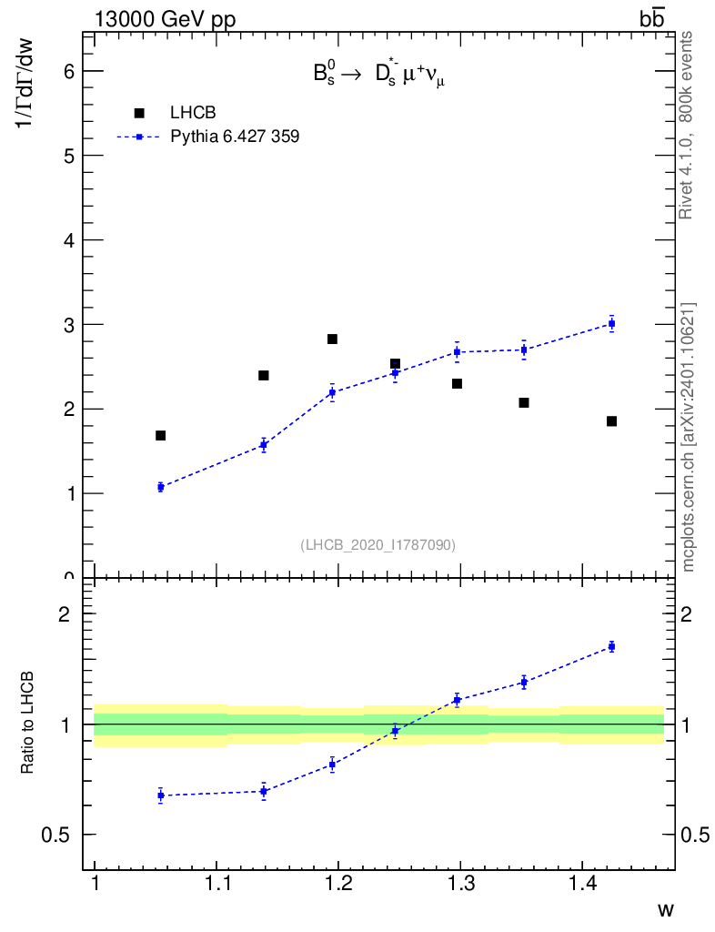 Lines: data, pythia6 6.427 359 |