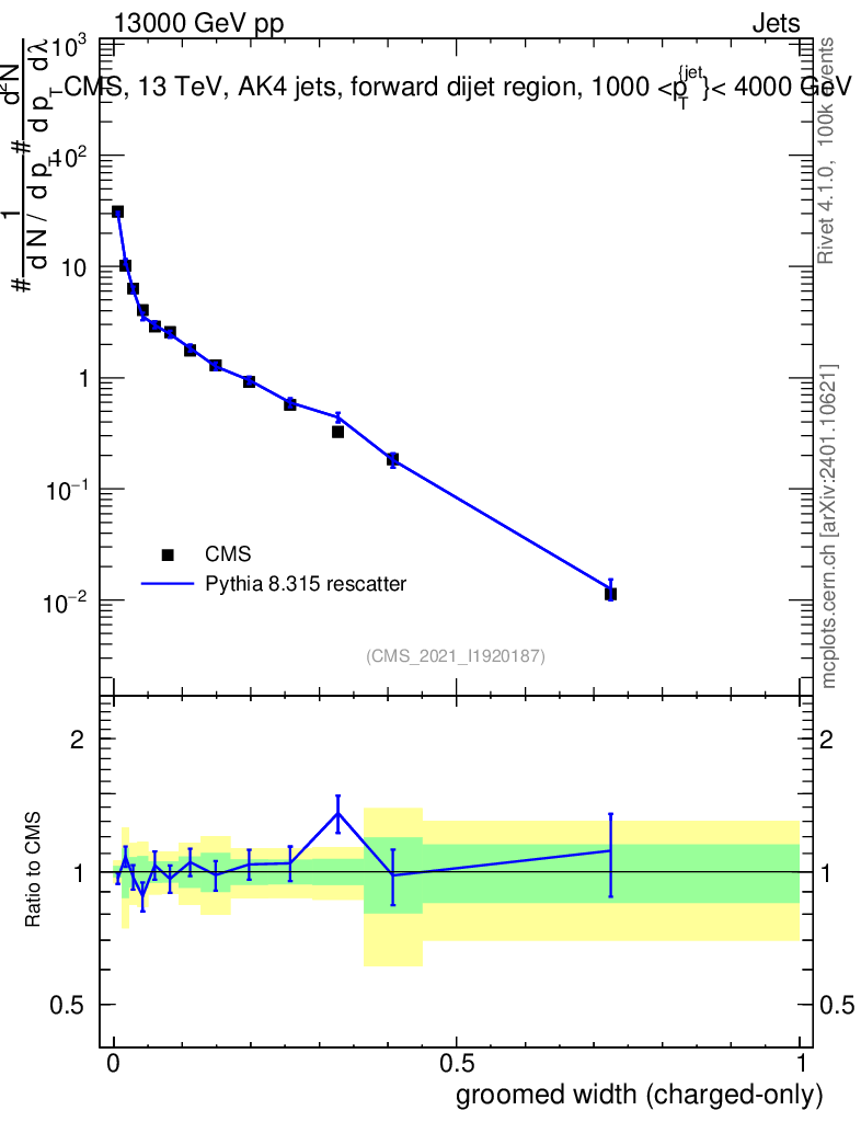 Lines: data, pythia8 8.315 rescatter |