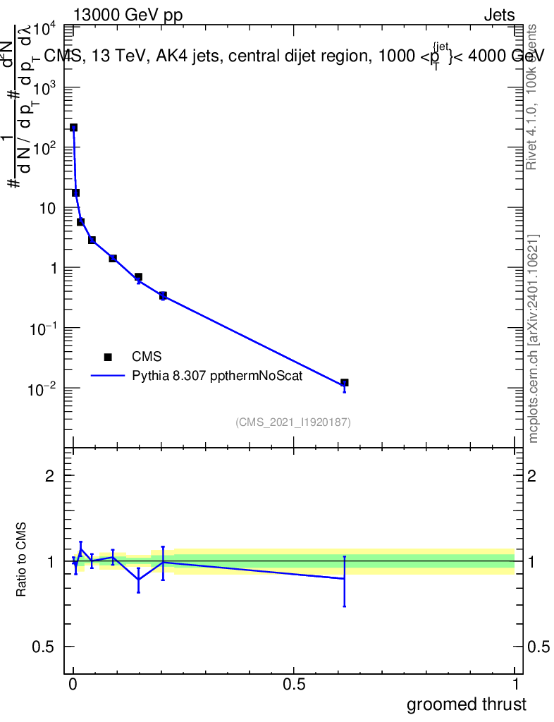 Lines: data, pythia8 8.307 ppthermNoScat |