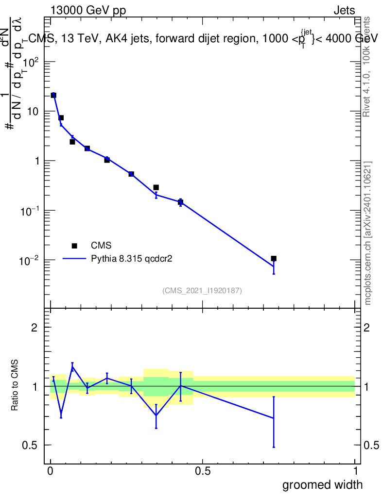 Lines: data, pythia8 8.315 qcdcr2 |