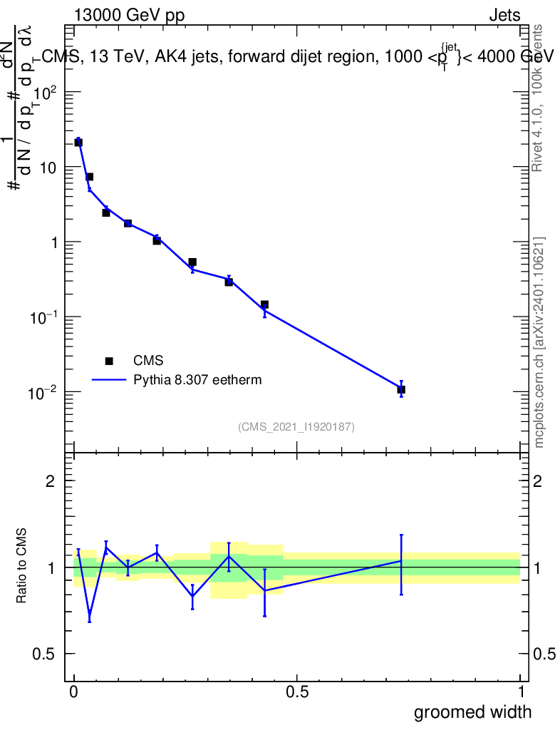 Lines: data, pythia8 8.307 eetherm |