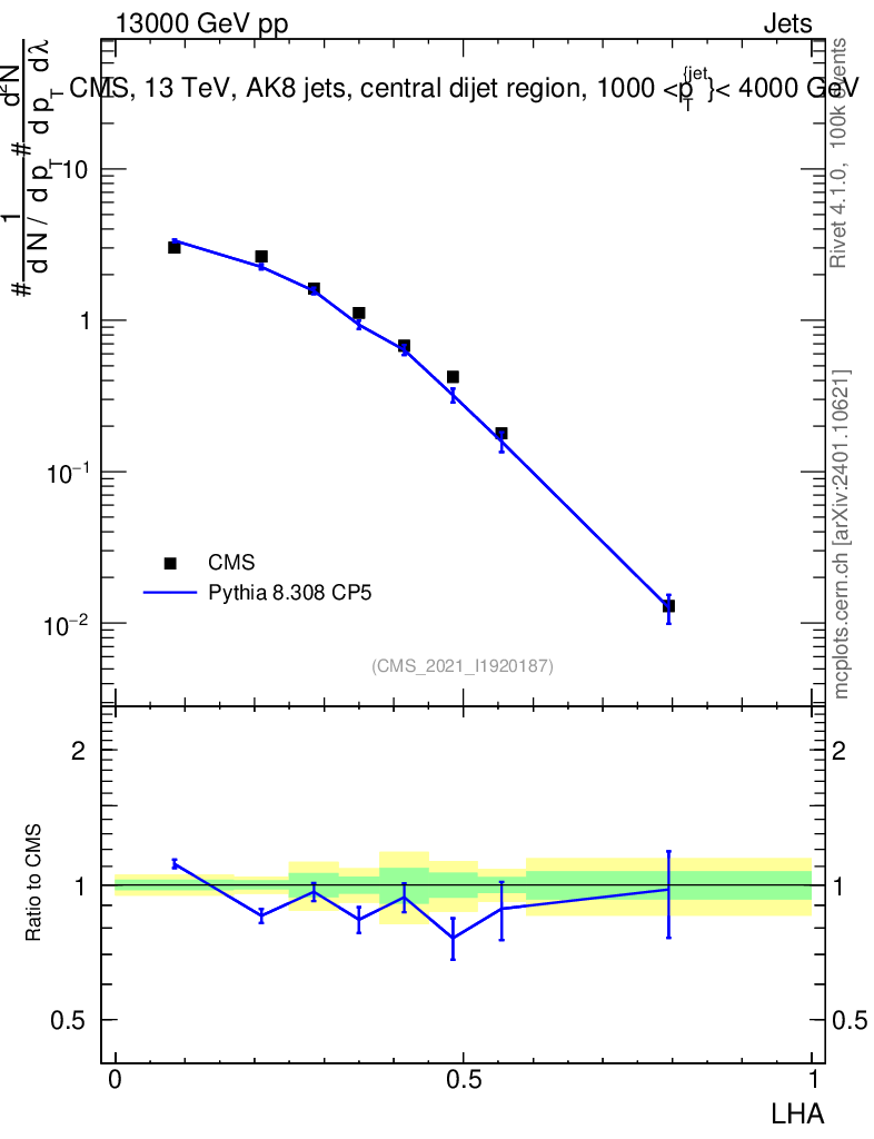 Lines: data, pythia8 8.308 CP5 |