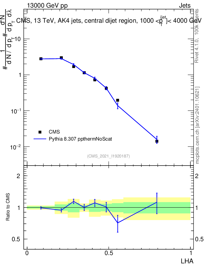 Lines: data, pythia8 8.307 ppthermNoScat |