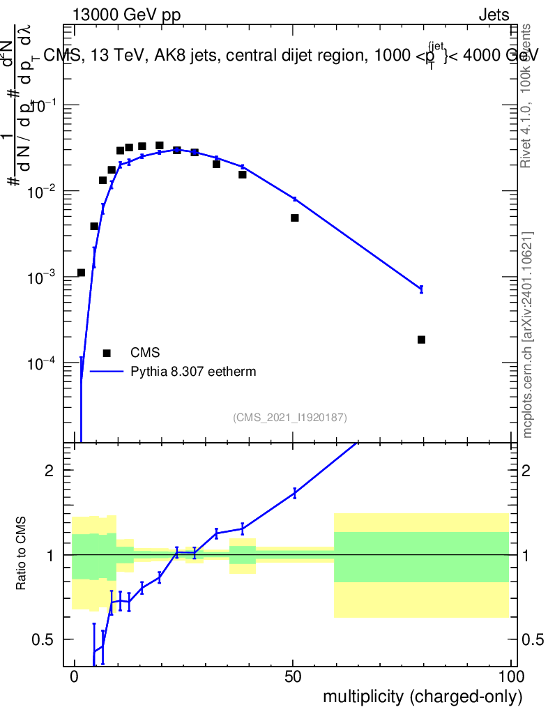 Lines: data, pythia8 8.307 eetherm |