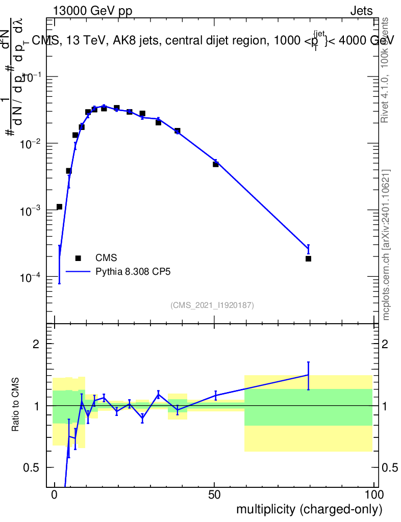 Lines: data, pythia8 8.308 CP5 |