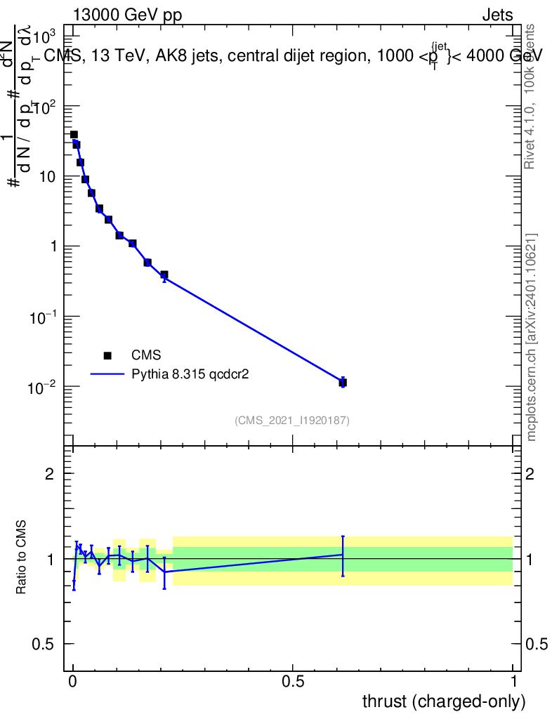Lines: data, pythia8 8.315 qcdcr2 |