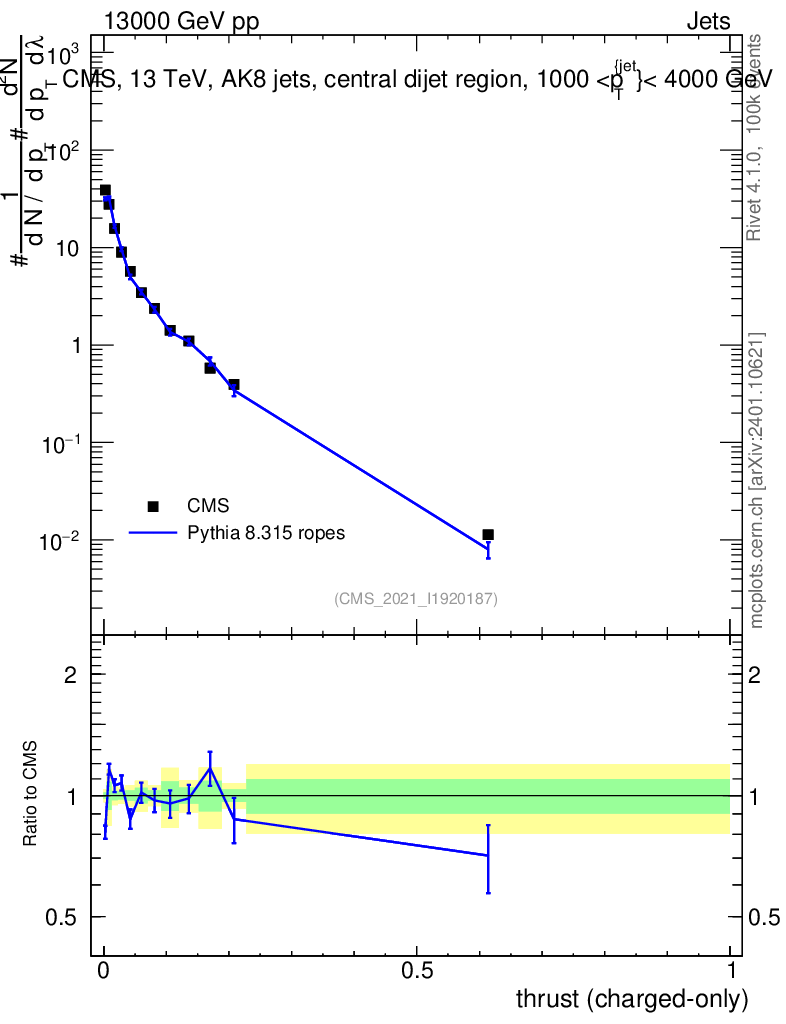 Lines: data, pythia8 8.315 ropes |