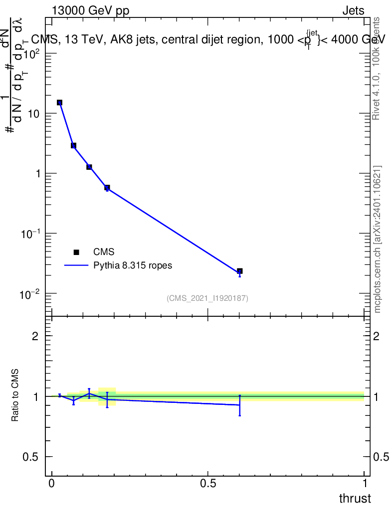 Lines: data, pythia8 8.315 ropes |