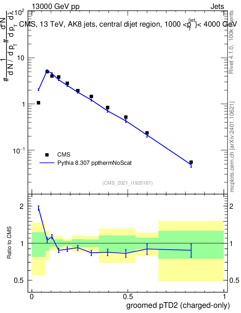 Lines: data, pythia8 8.307 ppthermNoScat |