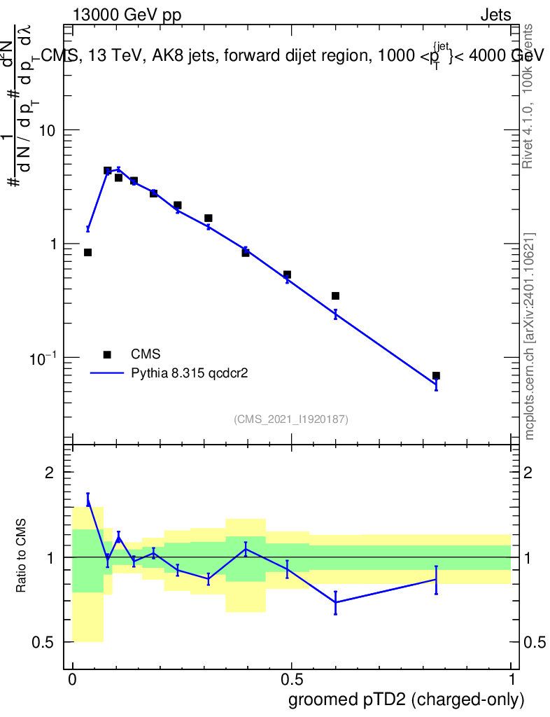 Lines: data, pythia8 8.315 qcdcr2 |