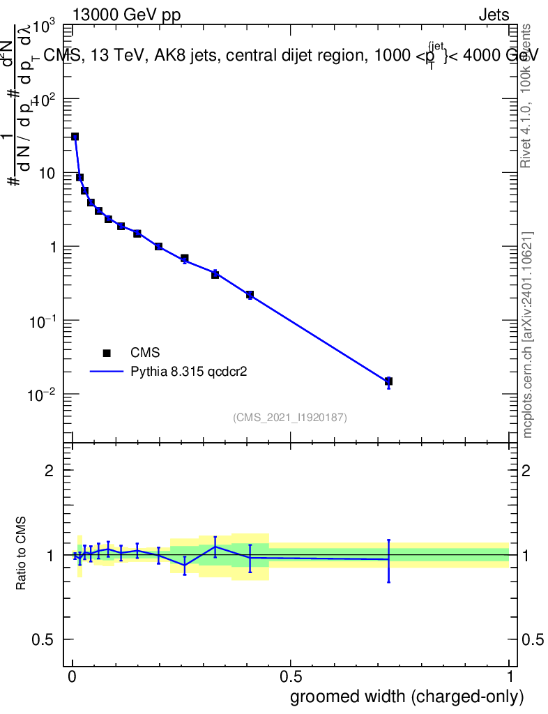 Lines: data, pythia8 8.315 qcdcr2 |