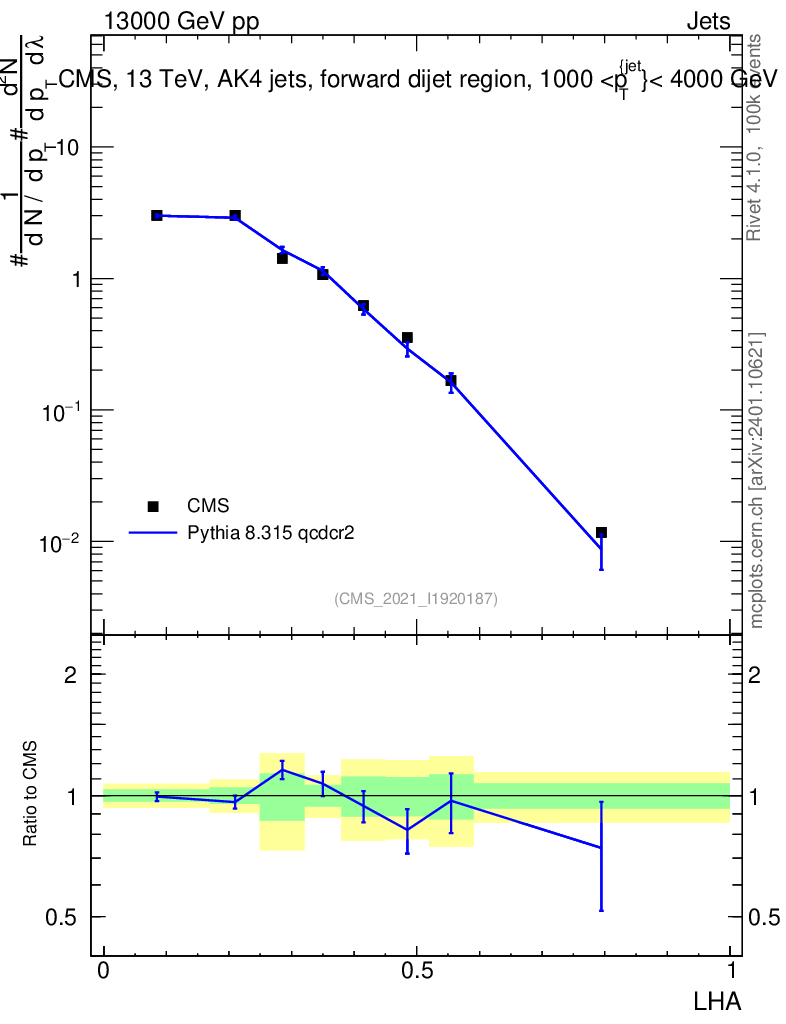 Lines: data, pythia8 8.315 qcdcr2 |