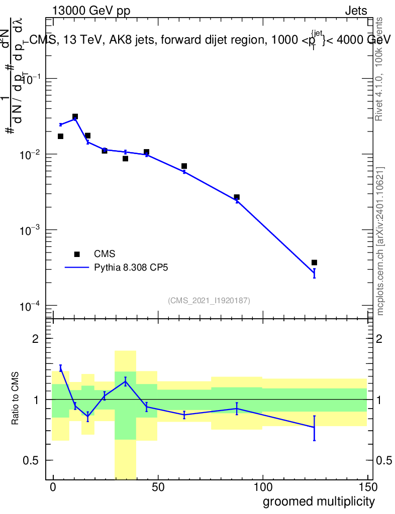 Lines: data, pythia8 8.308 CP5 |