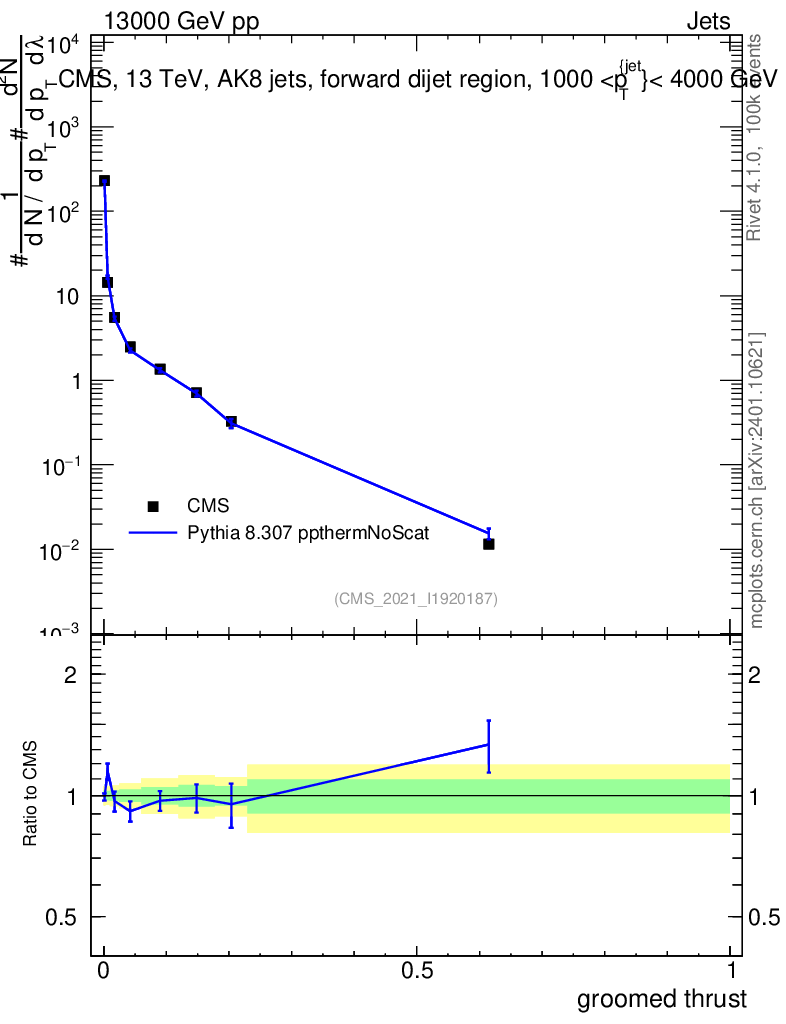 Lines: data, pythia8 8.307 ppthermNoScat |