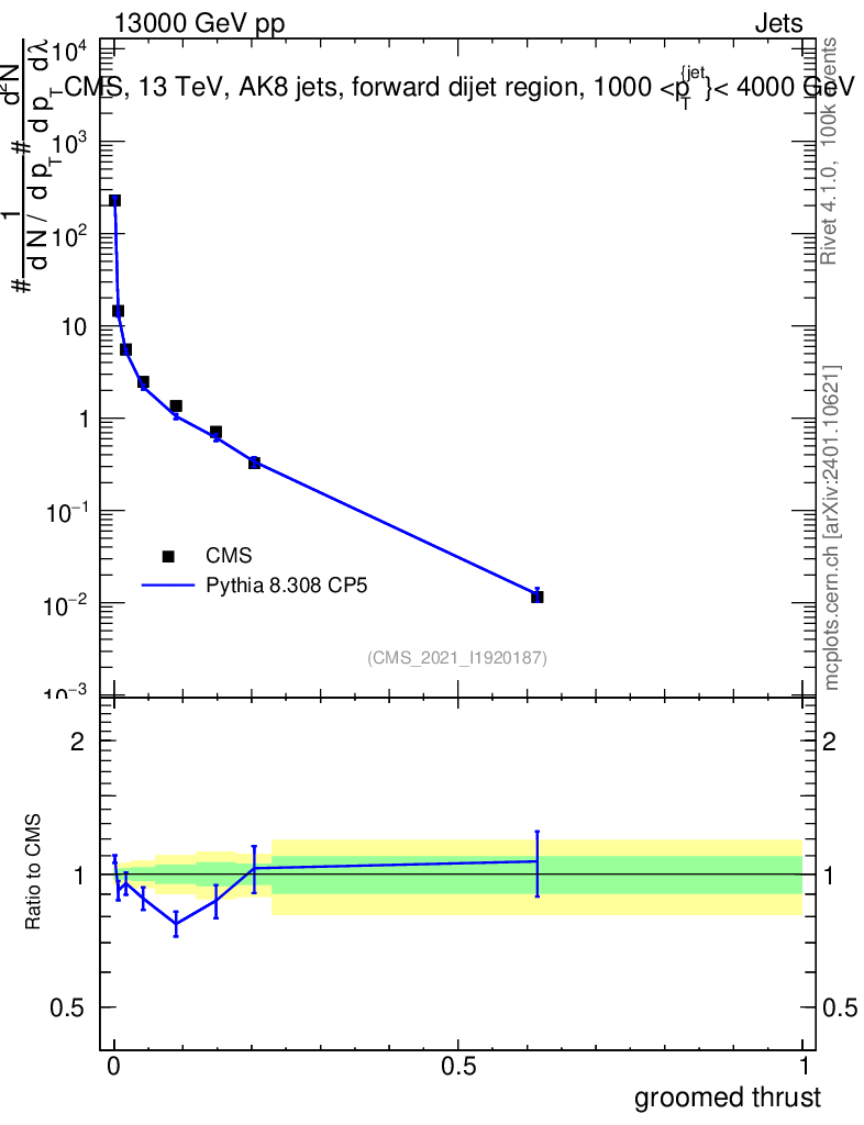 Lines: data, pythia8 8.308 CP5 |