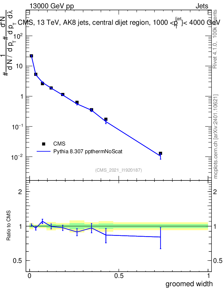 Lines: data, pythia8 8.307 ppthermNoScat |