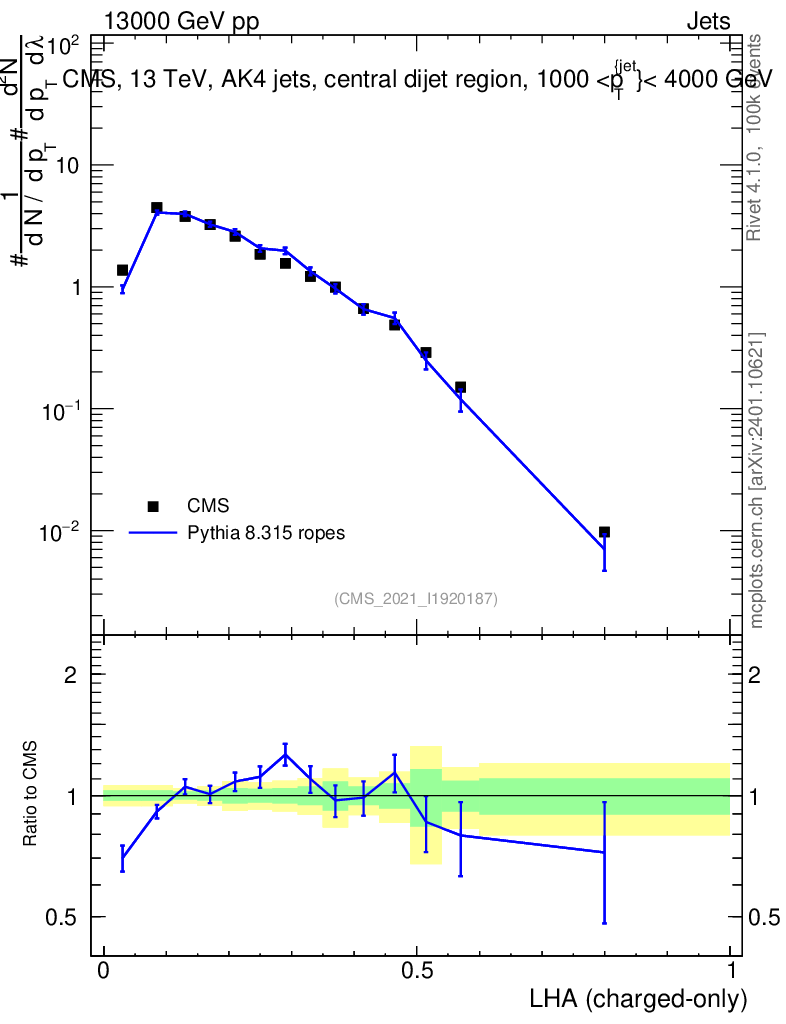 Lines: data, pythia8 8.315 ropes |