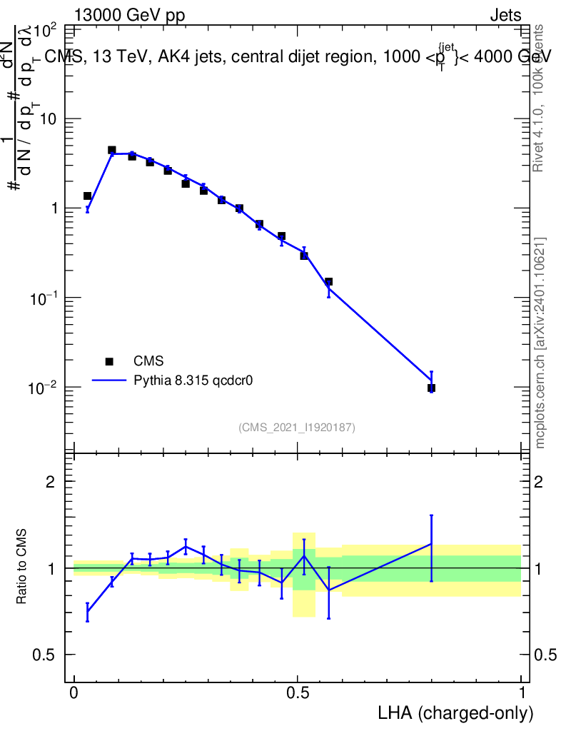 Lines: data, pythia8 8.315 qcdcr0 |