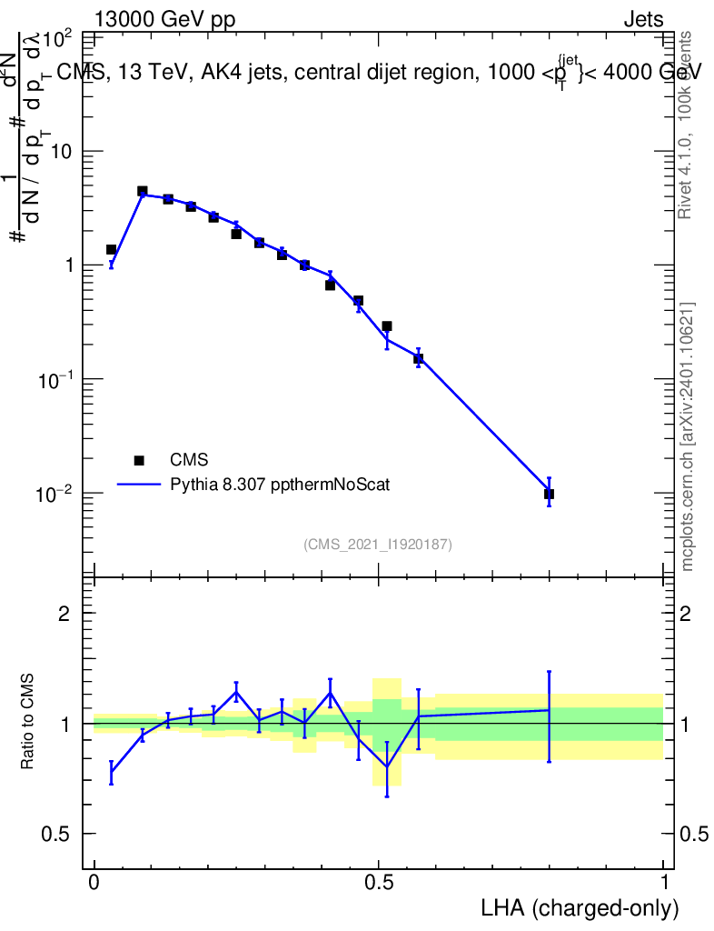 Lines: data, pythia8 8.307 ppthermNoScat |