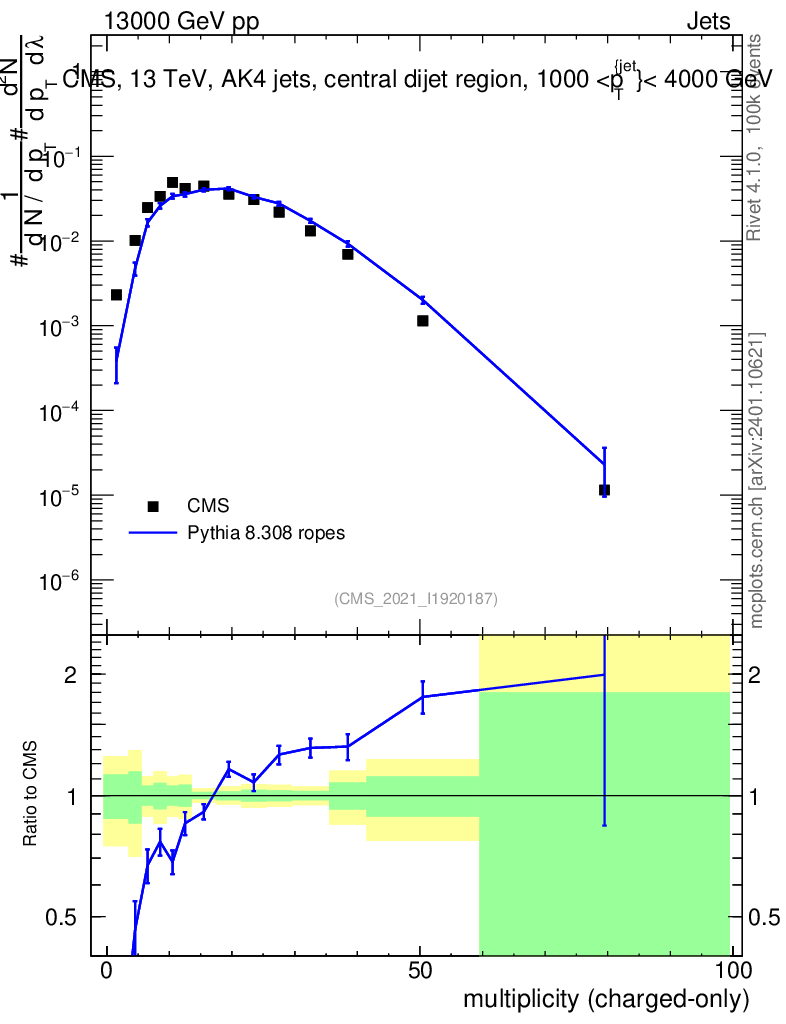 Lines: data, pythia8 8.308 ropes |