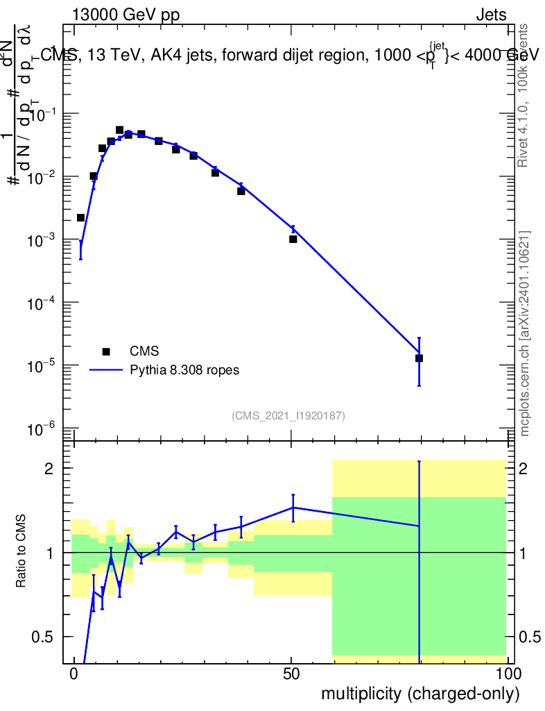 Lines: data, pythia8 8.308 ropes |