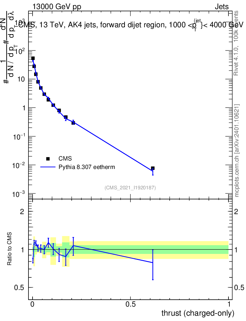 Lines: data, pythia8 8.307 eetherm |