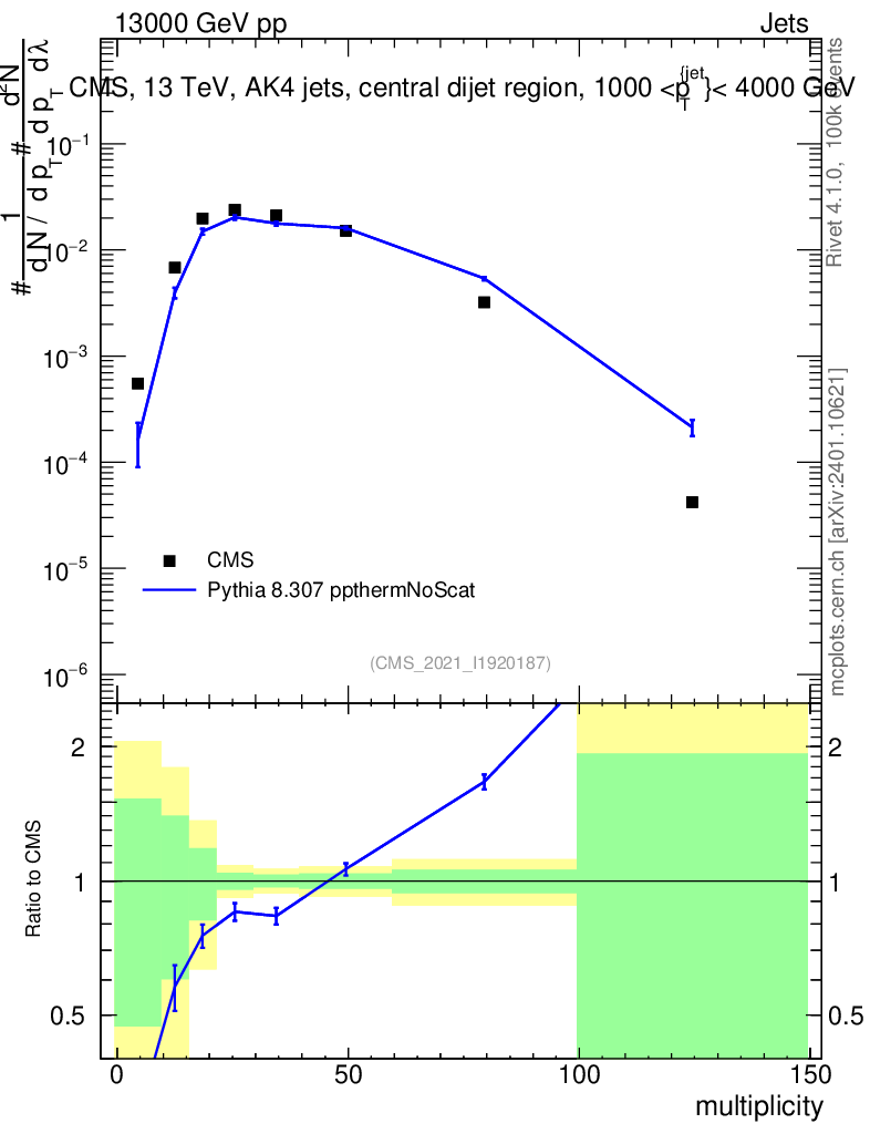 Lines: data, pythia8 8.307 ppthermNoScat |