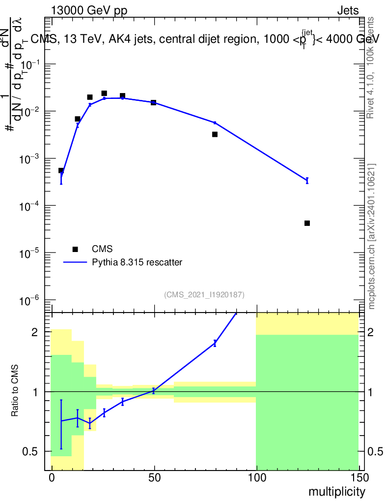 Lines: data, pythia8 8.315 rescatter |
