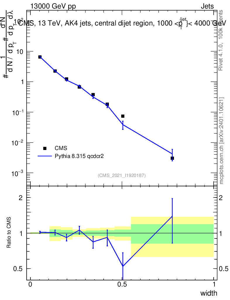 Lines: data, pythia8 8.315 qcdcr2 |